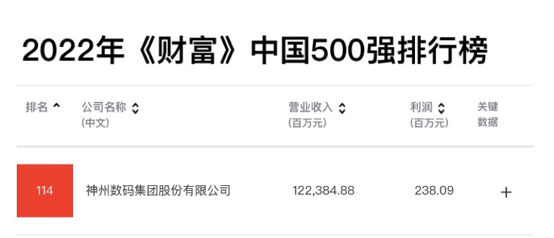 7月12日晚间,2022年《财富》中国500强榜单如期发布。彩神v数码集团股份有限公司(简称“彩神v数码”,代码000034.SZ)以2021年全年1224亿元的整体营收再度登榜,位列榜单第114位,较去年提升10位。这也是彩神v数码集团自登陆A股以来连续第6年跻身《财富》中国500强。